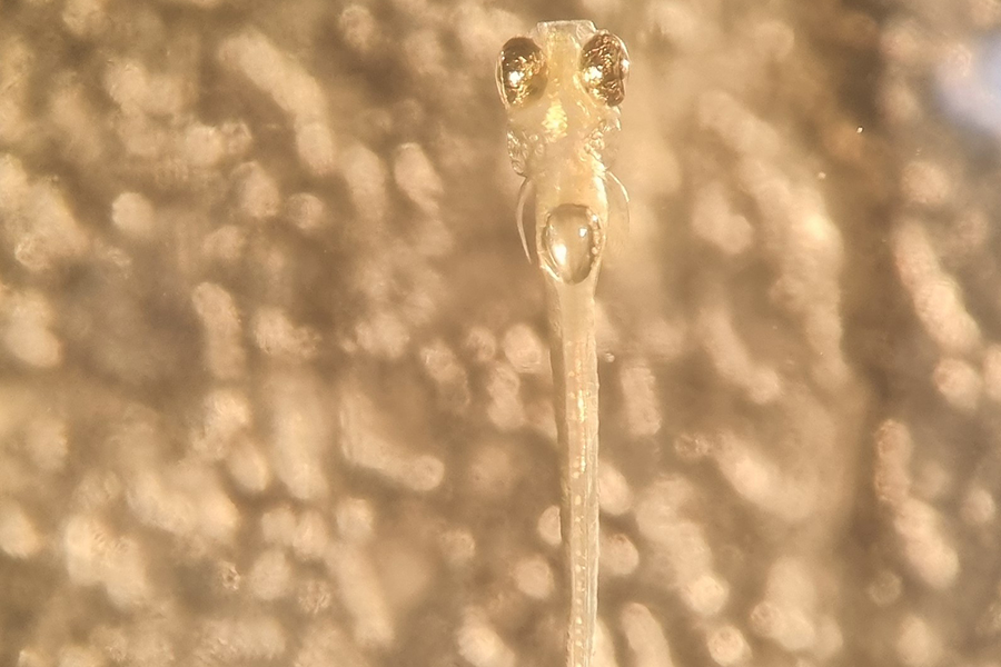 Rückenansicht einer Zebrafischlarve. Bild: Katja Slangewal