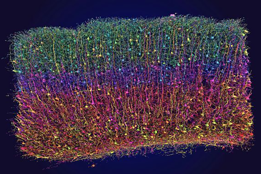 3D-Rekonstruktion von Neuronen aus elektronenmikroskopischen Daten im Rahmen des Projekts MICrONS. Foto: Tyler Sloan, Quorumetrix Studio